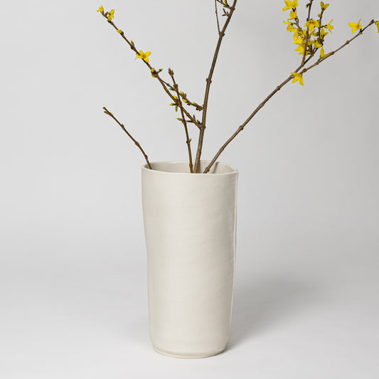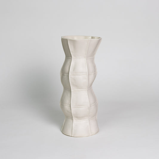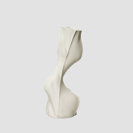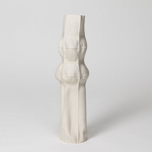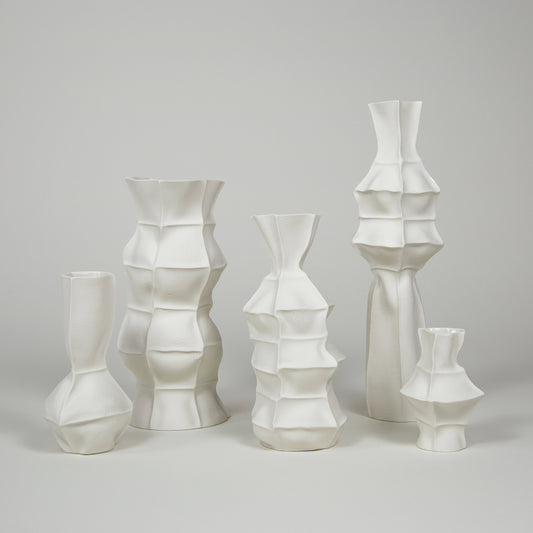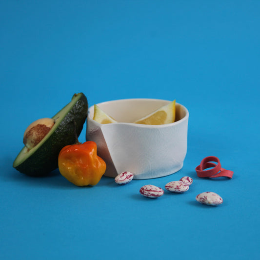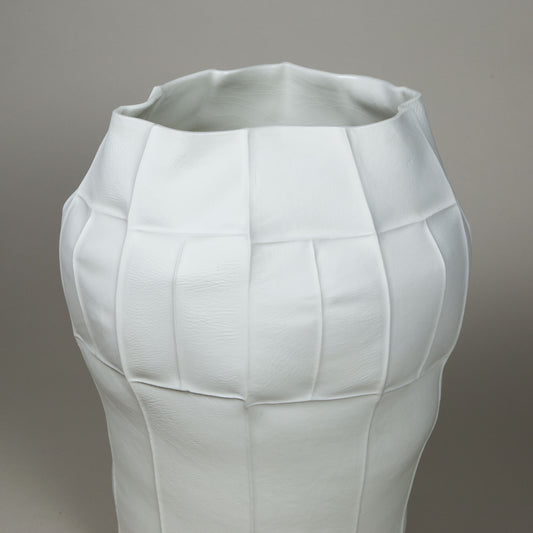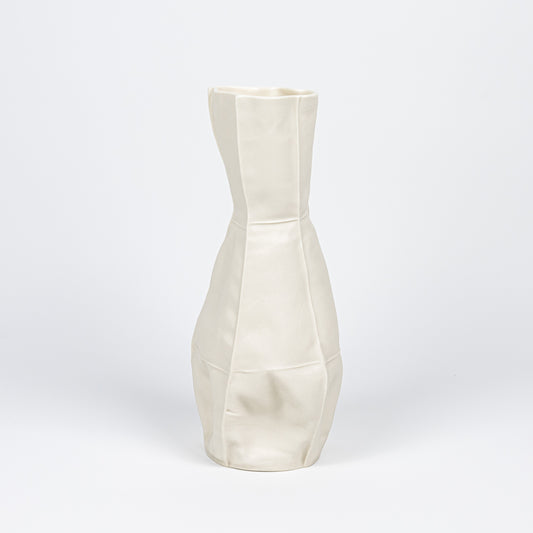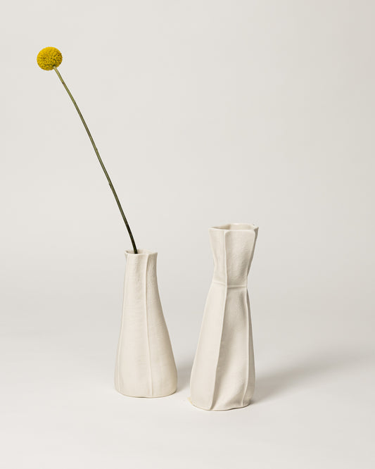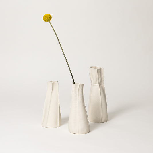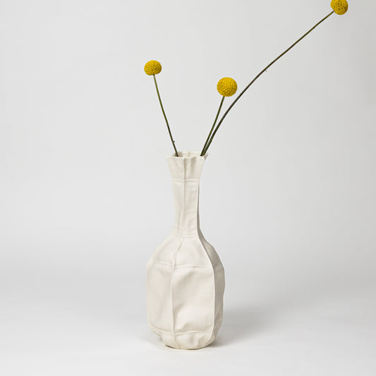 The Kawa Series is crafted using an unusual, painstakingly refined technique unique to Luft Tanaka. Each creation begins as a simple sketch, which is then transformed into a leather mold. After cutting, sewing, and preparing the mold for casting, liquid porcelain is poured inside, slowly forming a thin layer along the leather surface. Once the porcelain sets, the mold is carefully cut at the seams and gently peeled away, allowing the piece to be fired in a kiln.
