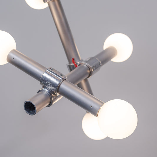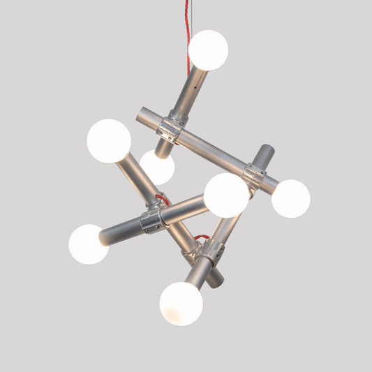 Rough and tumble yet inherently sculptural, the Pipe Dream Series reveals the raw beauty of industrial materials. Composed of aluminum pipes and fittings, each piece exposes its structure, joints, and connections, transforming utility into form. Suspended in space like an abstract drawing, the series explores function and improvisation.
